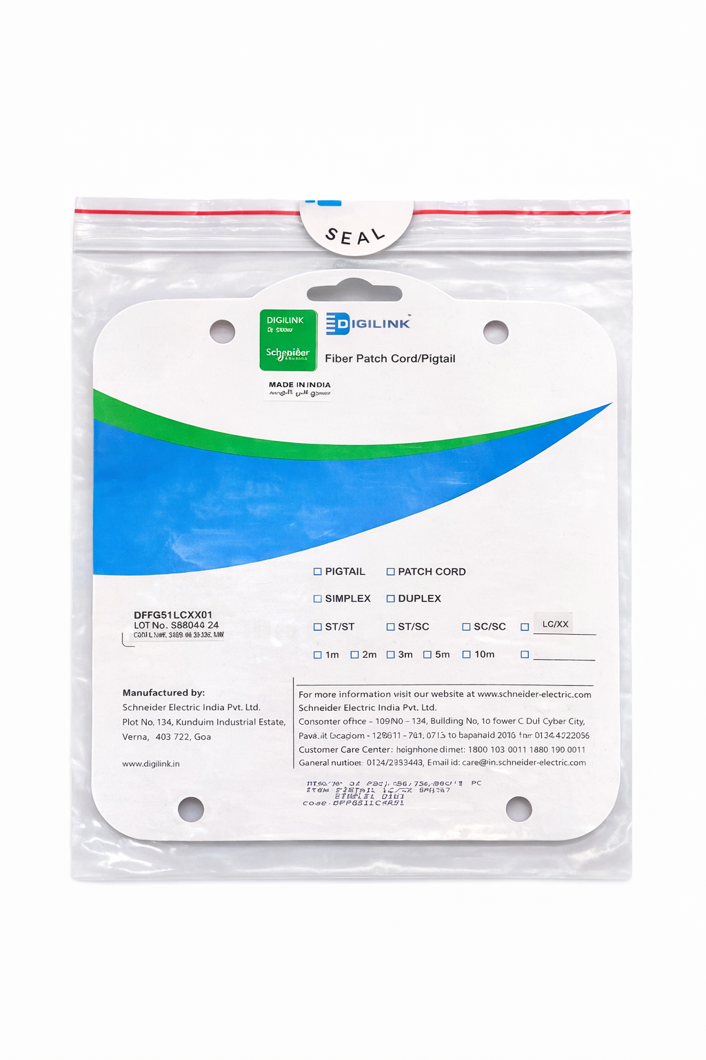 High-quality DIGILINK Fiber Optic Pigtail Simplex LC by Schneider Electric, designed for fiber splicing and termination in FTTH, ODF, and telecom applications. Reliable single-fiber performance with low signal loss and stable transmission.