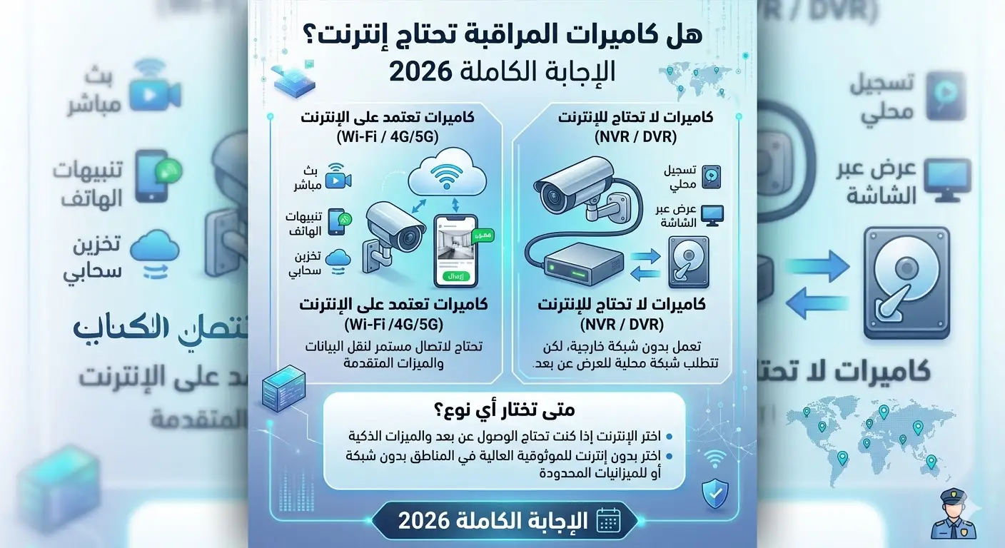هل كاميرات المراقبة تحتاج إنترنت؟ الإجابة الكاملة 2026