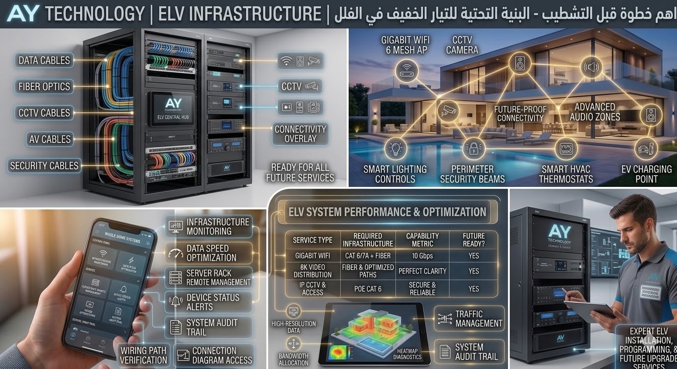 حلول البنية التحتية والمواسير - Infrastructure البنية التحتية للتيار الخفيف في الفلل | أهم خطوة قبل التشطيب إذا كنت في مرحلة بناء أو تشطيب الفيلا، فهناك خطوة أساسية لا يجب تجاهلها وهي تجهيز البنية التحتية للتيار الخفيف. هذه المرحلة هي التي تحدد جودة كل الأنظمة لاحقًا مثل:… Post by AY TECHNOLOY مارس 24 2026 No Comments Continue Reading Share post:
